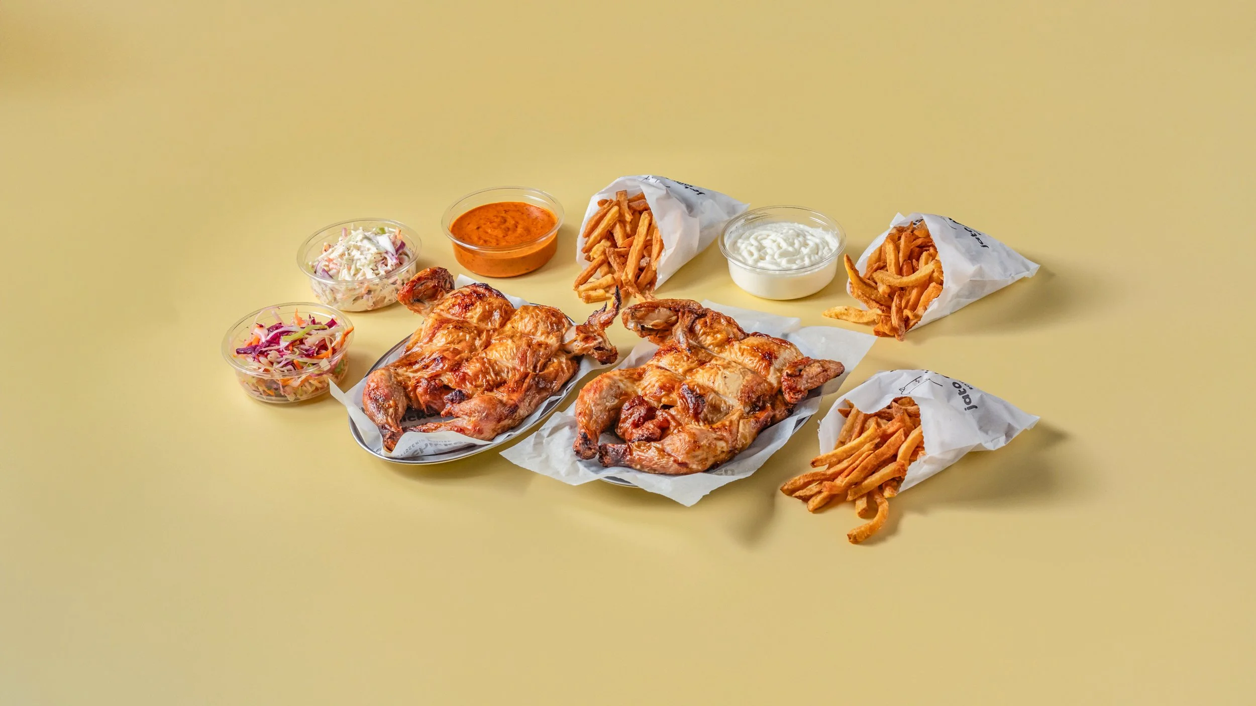 Our aim is to be London's freshest rotisserie chicken brand, serving whole and half chickens, thighs and drums, bold sharing platters and freshly chipped fries. We have seasonings inspired by food cultures around the world - from Hot Honey to Tandoori to the Spicy Boi. Never fried. Not processed. Just proper chicken, done properly.